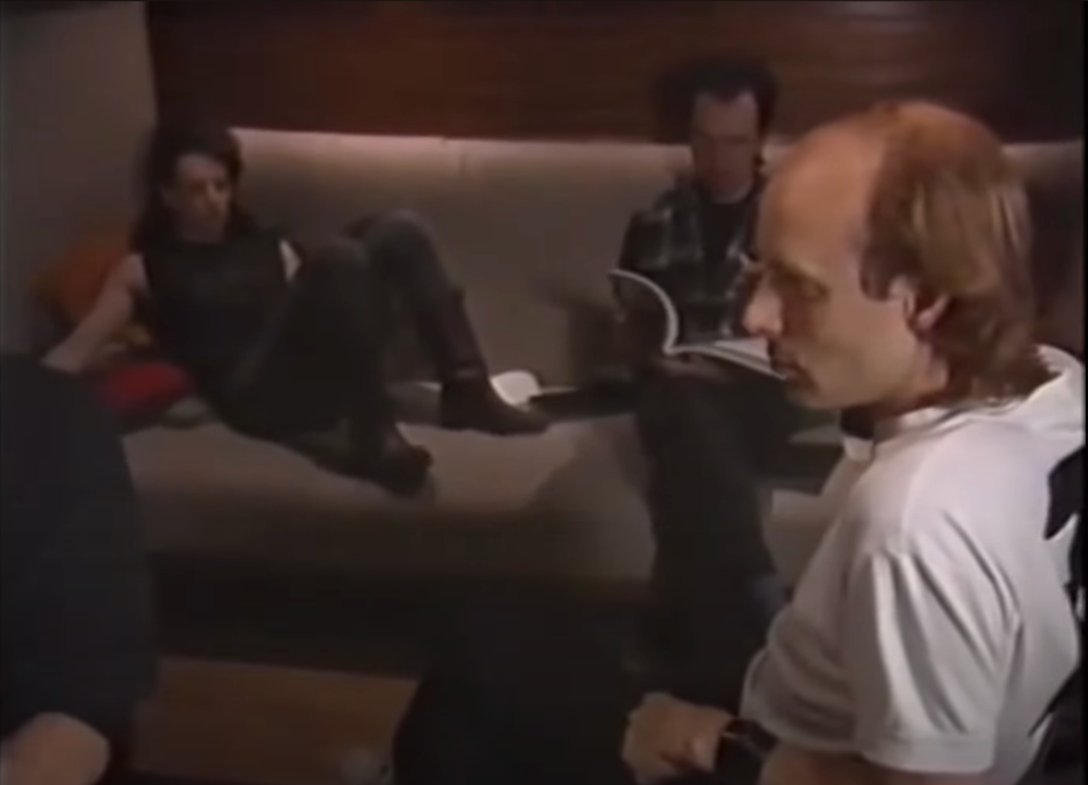 There’s also a scene where he is presented with a series of micro-cassettes from his archive and he explains that since he doesn’t know how to write music, when he had ideas for melodies or songs he had to sing them into a tape recorder. He then picks up various tapes and plays them, with lots of self-deprecation and eye-rolling. But then there’s the moment where he listens for a couple of seconds and says, “Oh, it’s me and Bono.” The film then cuts to the Unforgettable Fire documentary, where he’s working with U2 at Slane Castle. Bono’s very 80s mullet got a big laugh, but that overlooked the point of the segment which was to make that connection from sketches on a tape to a song that ended up being a defining moment for the band.