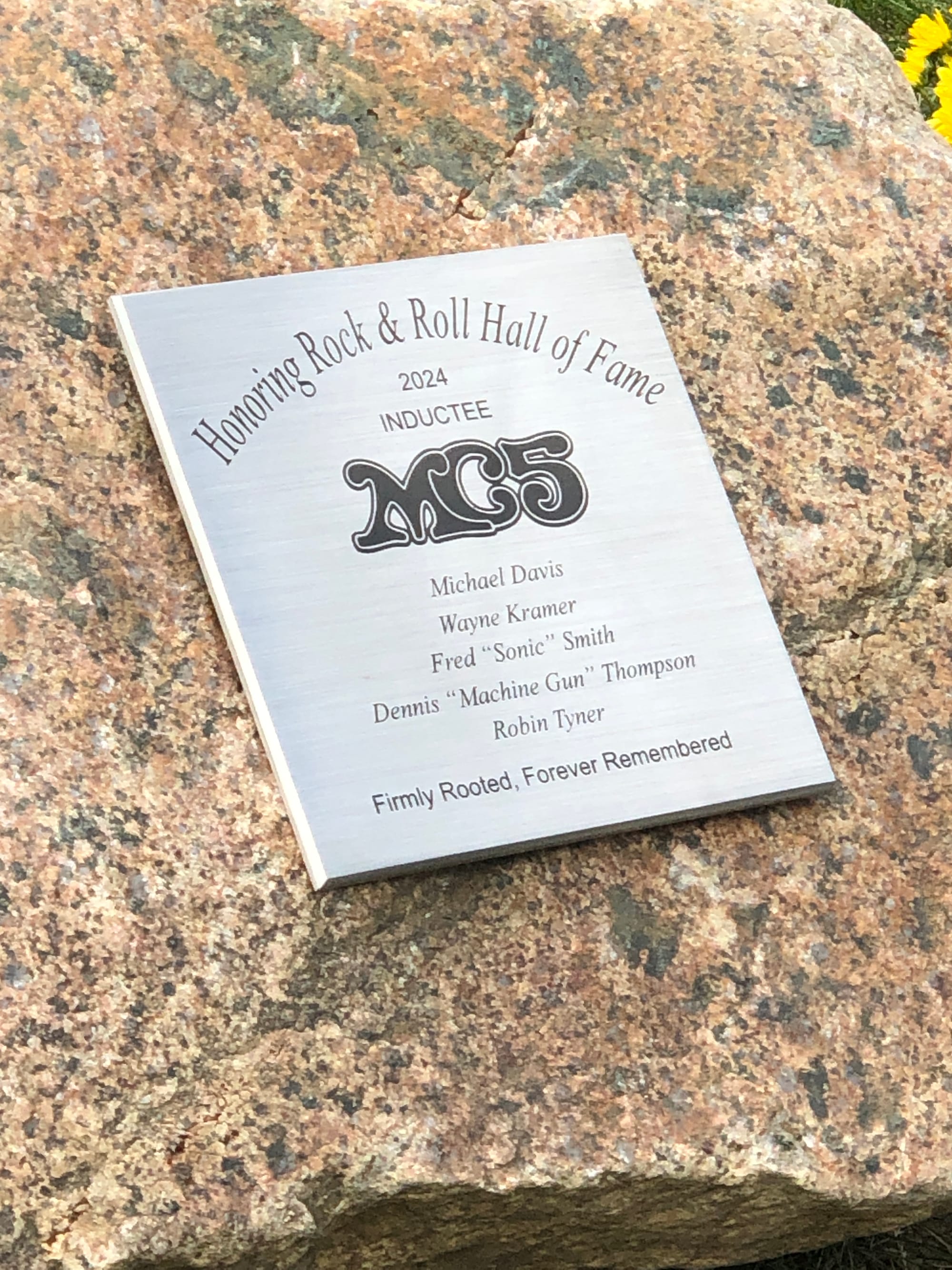 On Saturday, the city of Lincoln Park – where the band got their start – decreed it was MC5 Day and held a day of community festivities in a local park adjacent to the town bandshell, where the MC5 played in their early days. Proclamations were issued, a tree was planted, Becky Tyner spoke, Jackson Smith was present, Sugar Tradition played a set of originals and covers (if you are not hip to them, check them out – easily Detroit's best new group). The plaque adjacent to the tree is below. No one was pointing out the difference in the induction categories. I mumbled something about it to a friend and we both agreed that it was bullshit but that we were not going to be the ones pointing out the discrepancy. [You can see more photos of that day here.]