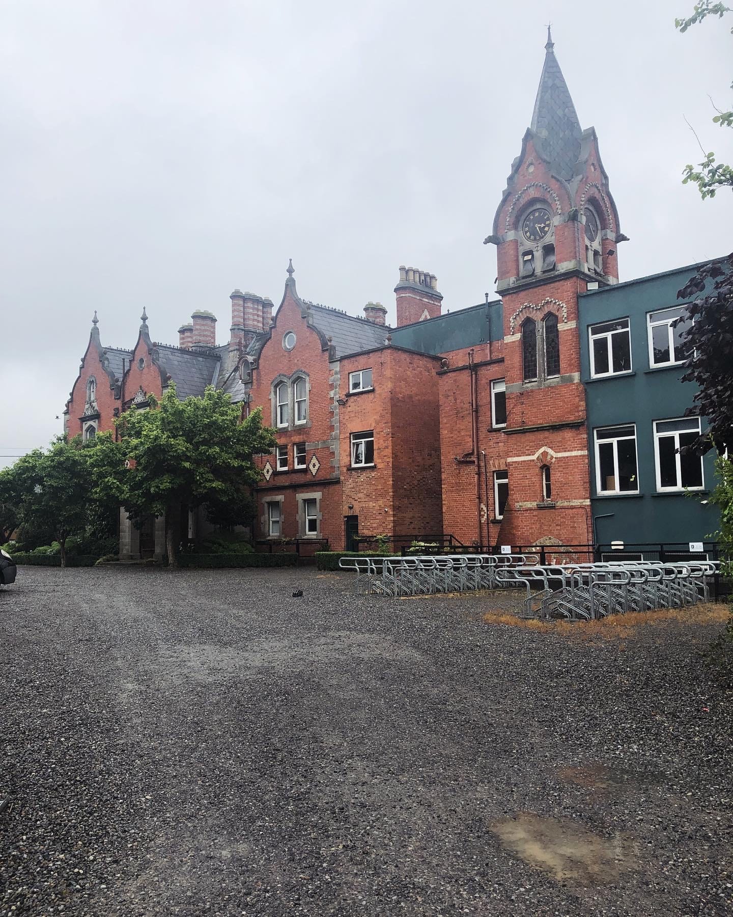 I went to Mount Temple Comprehensive School on a rainy Saturday morning. It felt less creepy to skulk around school grounds when there were no students around and between Taylor Swift (in Dublin for three shows at Aviva) and Dublin Pride, center city was crowded enough so I decided to poke around the edges. I did not expect to get onto the grounds but the gate was open and I walked right in. It’s an old funky building, originally built in the late 1800’s as a residential house, but eventually became a school and it is where the members of U2 met, thanks to Larry Mullen Jr. putting a card on a bulletin board that either read “Drummer seeks musicians to form band” and/or “Wasted money on drum kit, who did the same with a guitar?” The band that would eventually become U2 (but got their start as Feedback) both rehearsed and played their first gigs at Mount Temple Comprehensive.