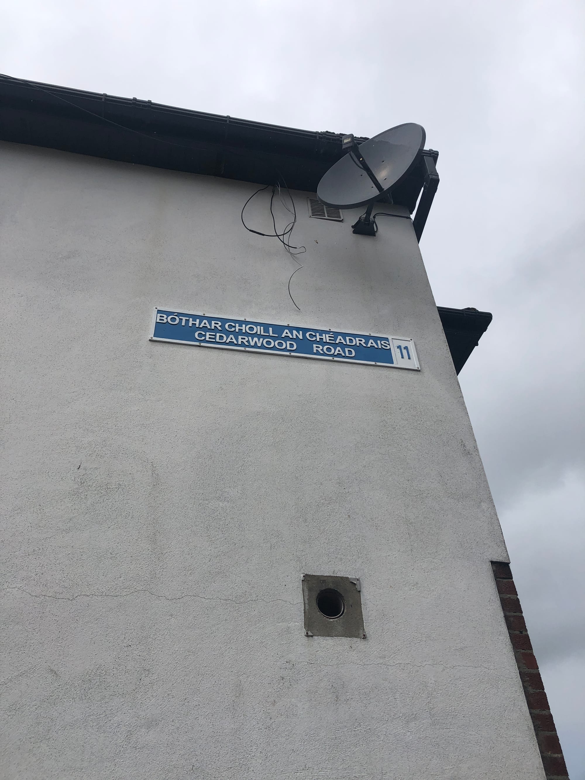 Cedarwood Road is north of center city, not far from the airport. When you’re taking the bus from the airport into town you’ll absolutely recognize the housing stock if you saw any of the 2018 U2 shows for Innocence and Experience, when an arena-sized animated drawing of 10 Cedarwood Road was projected onto the video screen. That particular style of semi-detached house was popular and I saw it in a few places on my recent travels in Ireland. I rode the double-decker bus northward, watching my progress on Google Maps so I knew when to get off the bus. It was around 11 o’clock so outside of rush hour and so the bus was an average assortment of humans needing to get from point A to point B. There was even That Guy who needed to watch a video on his phone without headphones (although there were a lot less of those in Ireland).