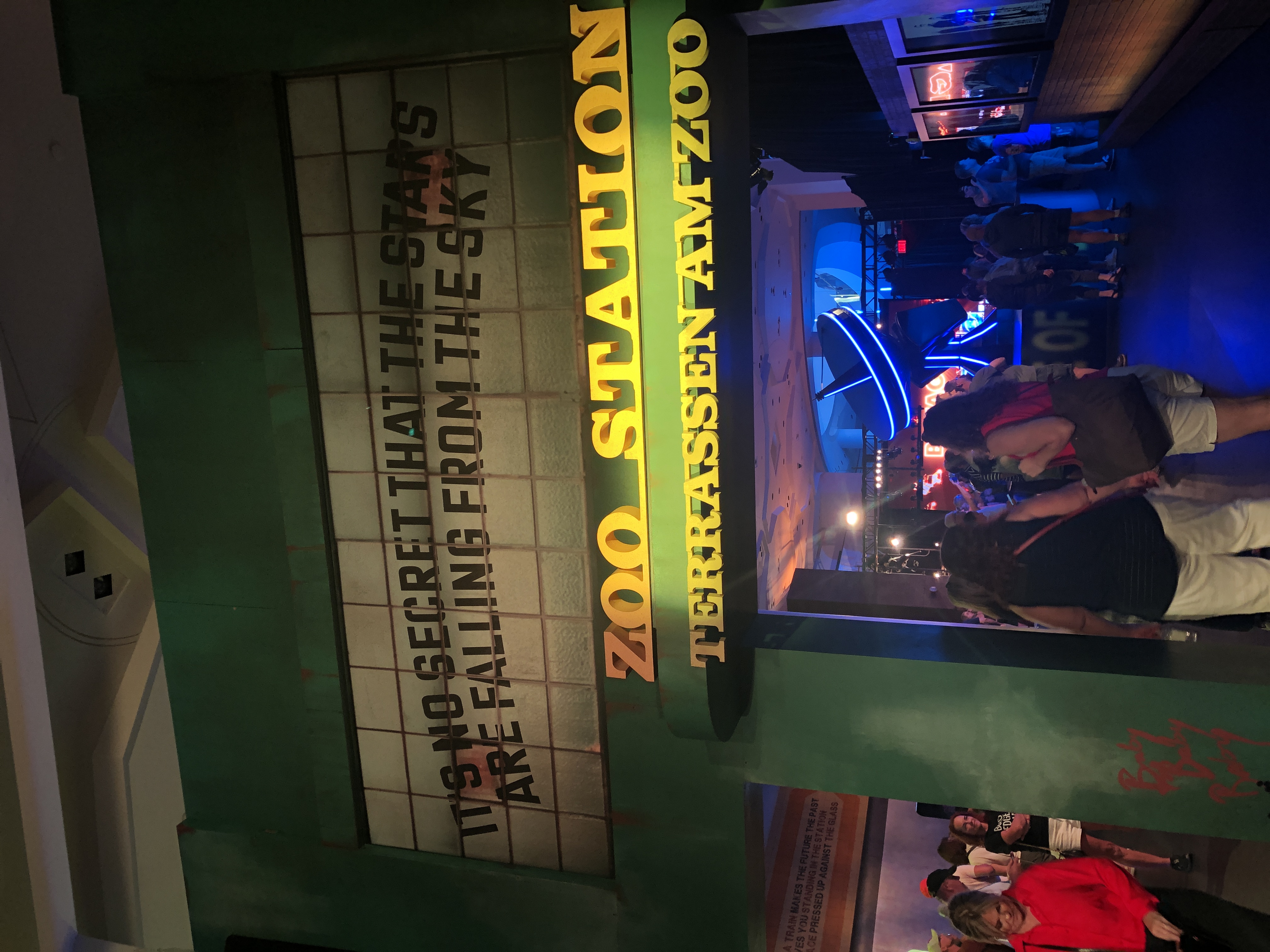 Let us now discuss Zoo Station. This thing exists to sell merch and to have some kind of private lounge for the VIP people, but because it’s a Live Nation jawn, it is an “IMMERSIVE FAN PORTAL” developed by the VIP experience company “in collaboration with Gavin Friday and with direct input from the band” (emphasis mine). I would not be so quick to have my name on this exhibit, guys. It was very Instagrammable but also very lightweight and lacking in substance for something that has U2’s name on it. It isn’t a Trabant that was used on ZooTV. There aren’t handwritten lyrics, or posters, or artifacts from previous tours. Everything in the room is something created for this “experience2” so there’s none of the emotional resonance you can experience at the Rock and Roll Hall of Fame or even (to keep things local) the Punk Rock Museum located elsewhere off the Strip.