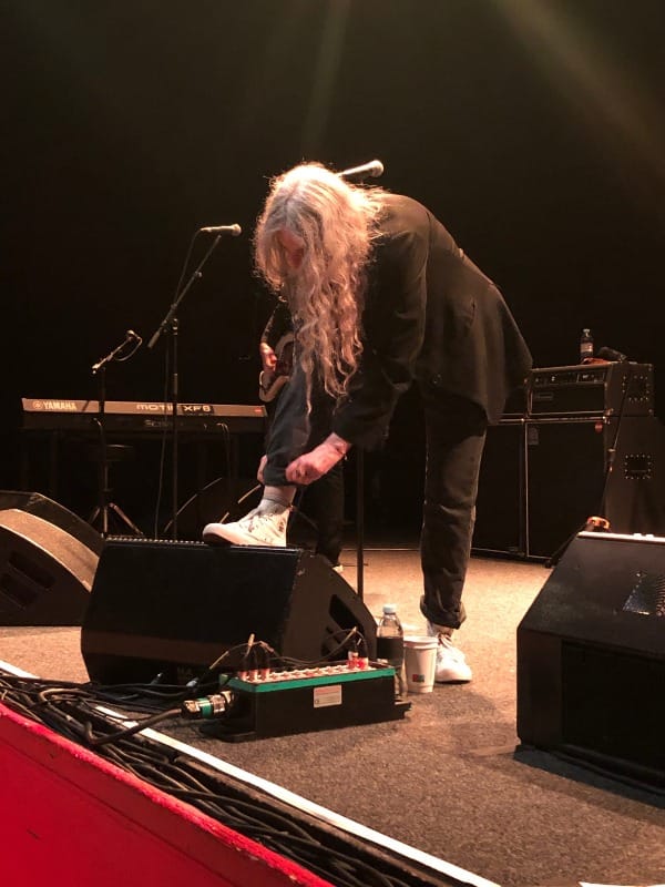 As Patti Smith made her entrance onstage for the first of her two sold-out nights at Dublin’s Vicar Street, she made a point of placing her foot on the monitor and rolling up her pants legs to reveal a pair of white high top Pro Keds. She’d later explain that she was wearing sneakers because the stage was carpeted and she couldn’t move well in her usual regulation boots. I know you’re probably going to think that none of this is a big deal but what we refer to around here as “The Uniform” isn’t trivial. But the sneakers delighted her and the audience’s warmth delighted her and she giggled and had fun with the crowd and the band. Night one was definitely a special moment from end to end, but it’s not like Friday night wasn’t great as well, just felt a little more uneven in spots.