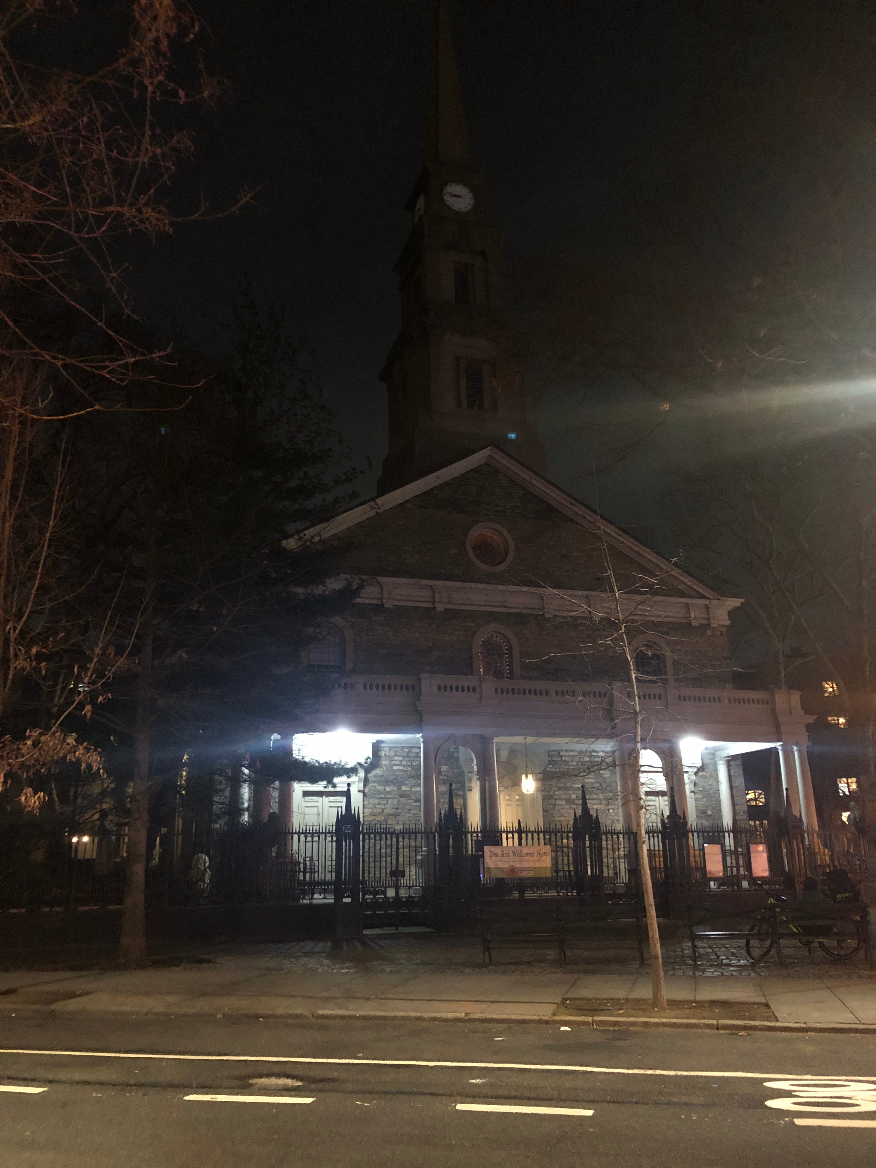 It is a corner of granite and ivy and gravestones and wrought-iron fence in the middle of bars and coffee shops and izakayas and tea rooms. There are definitely ghosts hanging around the churchyard because it is the second oldest church still standing and people have been praying there for a very long time. When I worked in an office at the corner of 8th Street and Broadway I would come sit on the benches out front on the days when corporate America was doing its best to pulverize me between its grindstones.