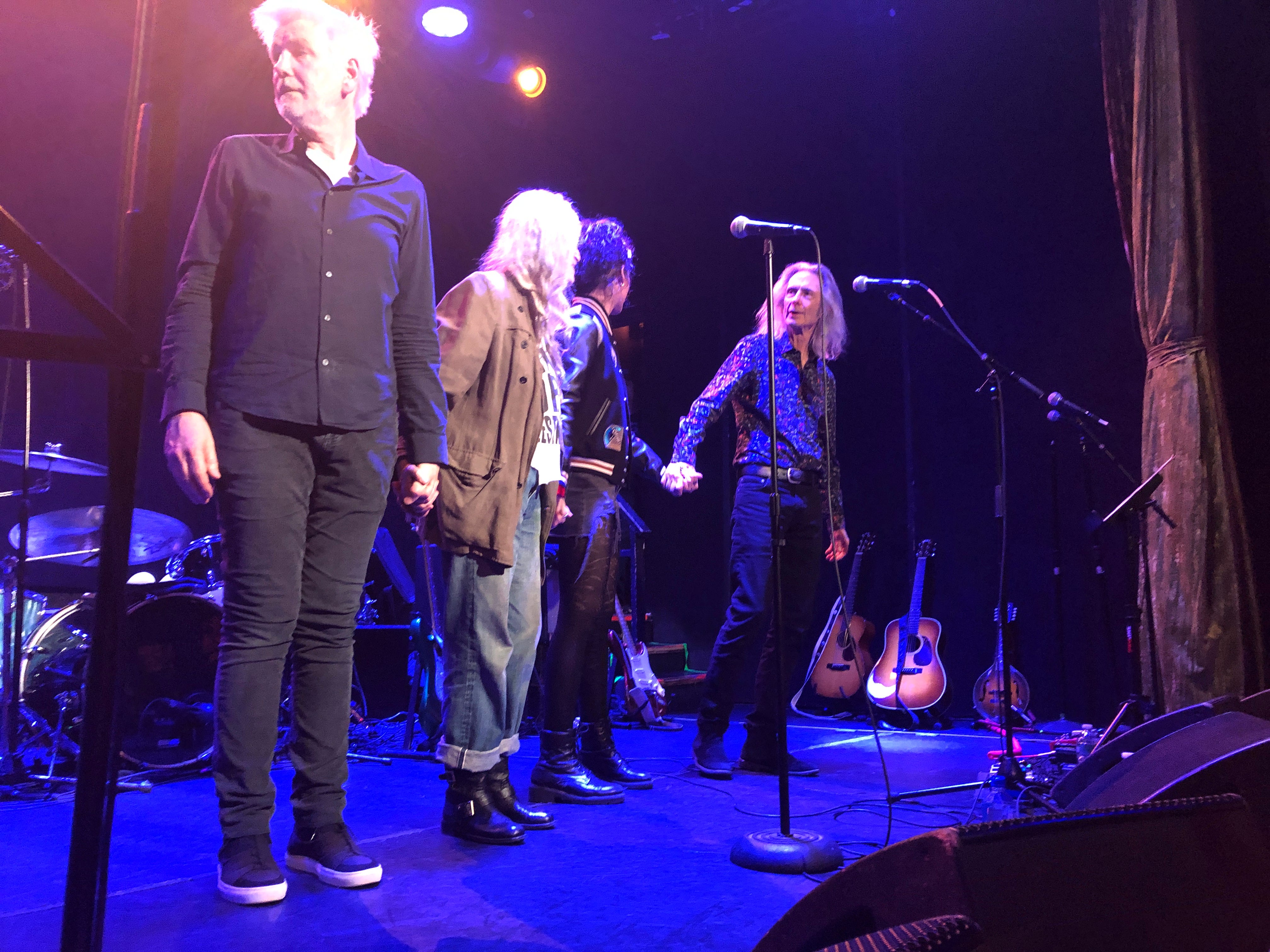 After one or two verses, Tony stepped to the mic and sang the first verse of “Dead Flowers” which is where we all thought this was going until he stopped and said, “It’s the same song! It’s basically the same song.” Once I realized I was definitely not going to figure this out just by using my thinking brain I did a fucking google and discovered that we were being treated to “I Love This Bar” by Toby Keith. Which makes sense if you have been to these kinds of things before. I mean, Patti used to cover Debby Boone’s “You Light Up My Life” back in the day. She covered “Stay” by Rihanna in 2013. At Lenny’s birthday celebration in 2016 years ago the entire band walked out and stormed into the Doobie Brothers’ “Jesus Is Just Alright.” (IT WAS FUCKING GREAT.) So this was just another one of those moments, which for this band, especially in this room, is, you know, reasonable and customary. I did, however, feel bad for anyone in the audience for whom this was their first experience seeing Patti Smith. Because this is definitely not what they were expecting.
